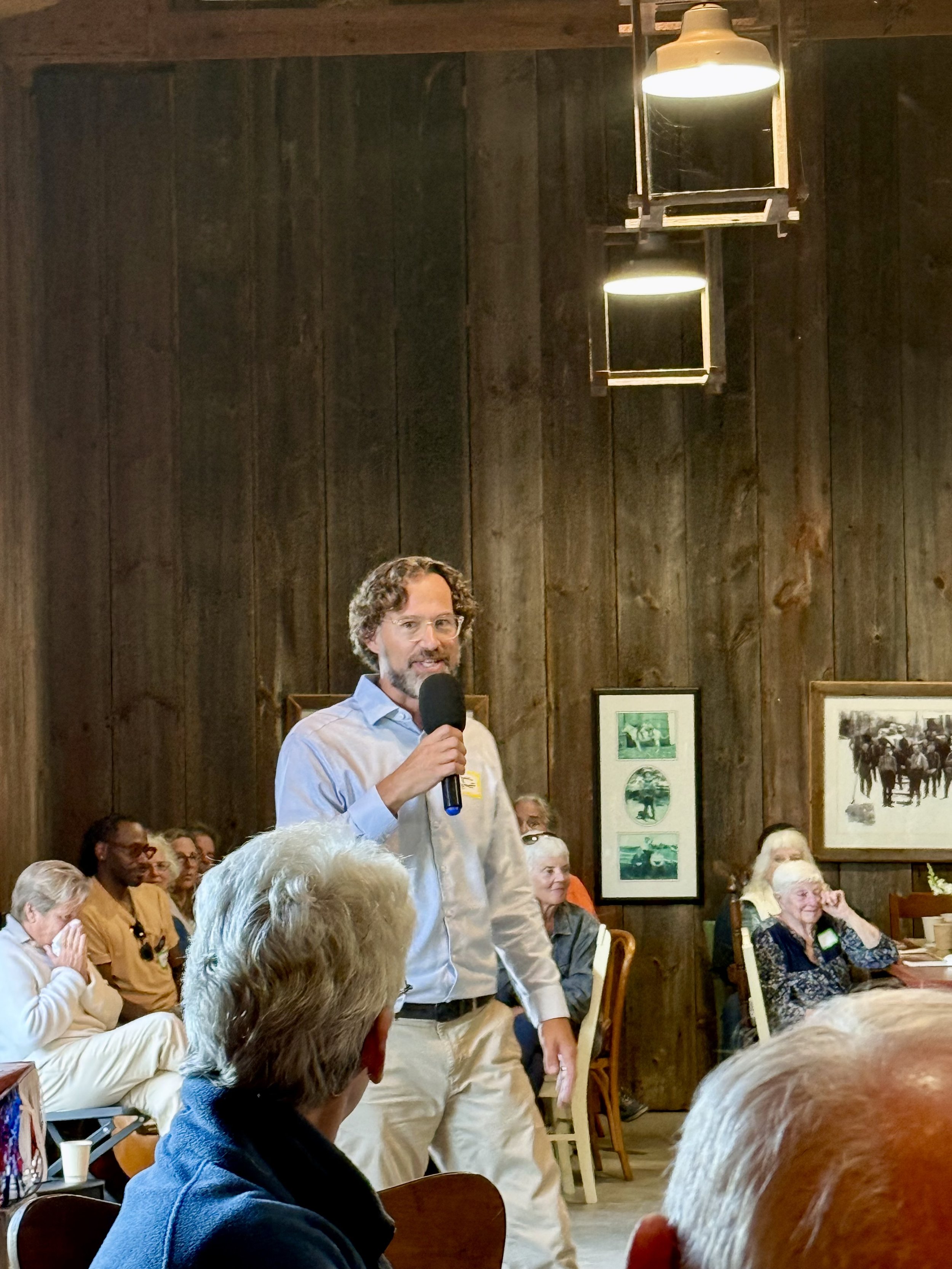 We would like to thank everyone who attended our Friend-Raiser yesterday evening at Cherry Point Farm and Market (www.facebook.com/cherrypointmarket/). We enjoyed hearing some excellent speakers, including Barb Byrum, who is running for Michigan Secretary of State, Jamie Hill, who is running for Congress, Bryan Berghoef, an excellent speaker who gave us tips on how to be strong both personally and politically, and some folks who are running for other various positions at the state and federal levels (or folks who spoke on behalf of those who are running). We had a wonderful turnout, and several happy auction bidders walked away with beautiful gift baskets, artwork, and quilts. And how can you not love cherry pie topped with ice cream?!?