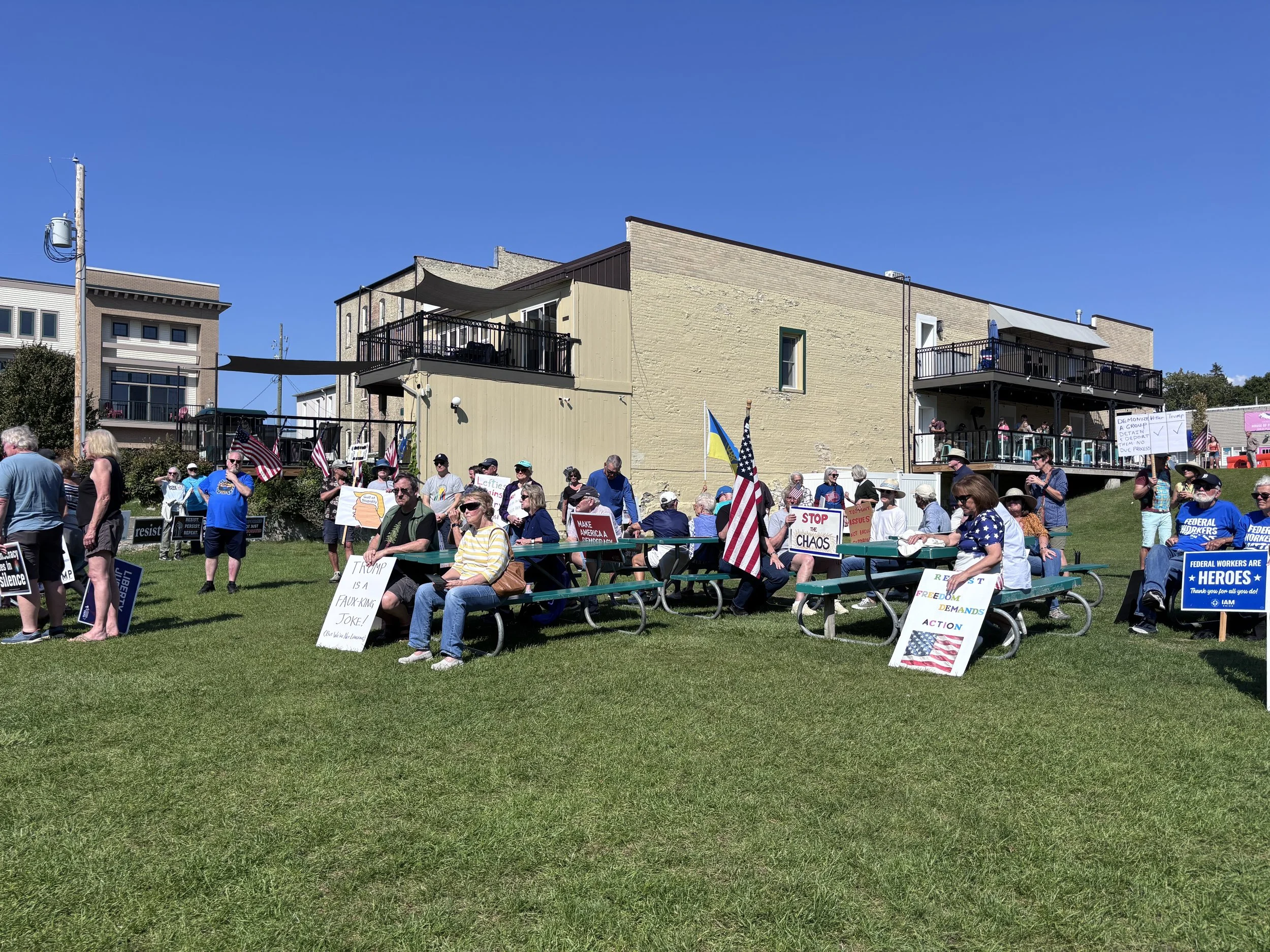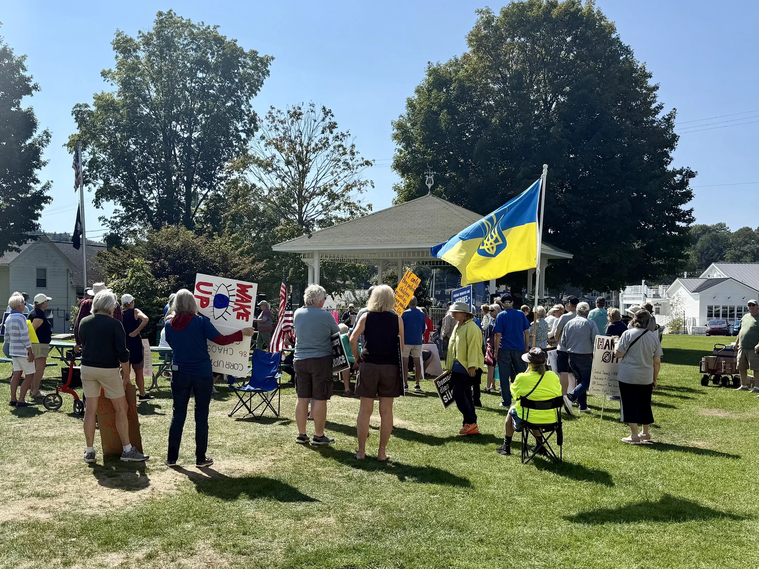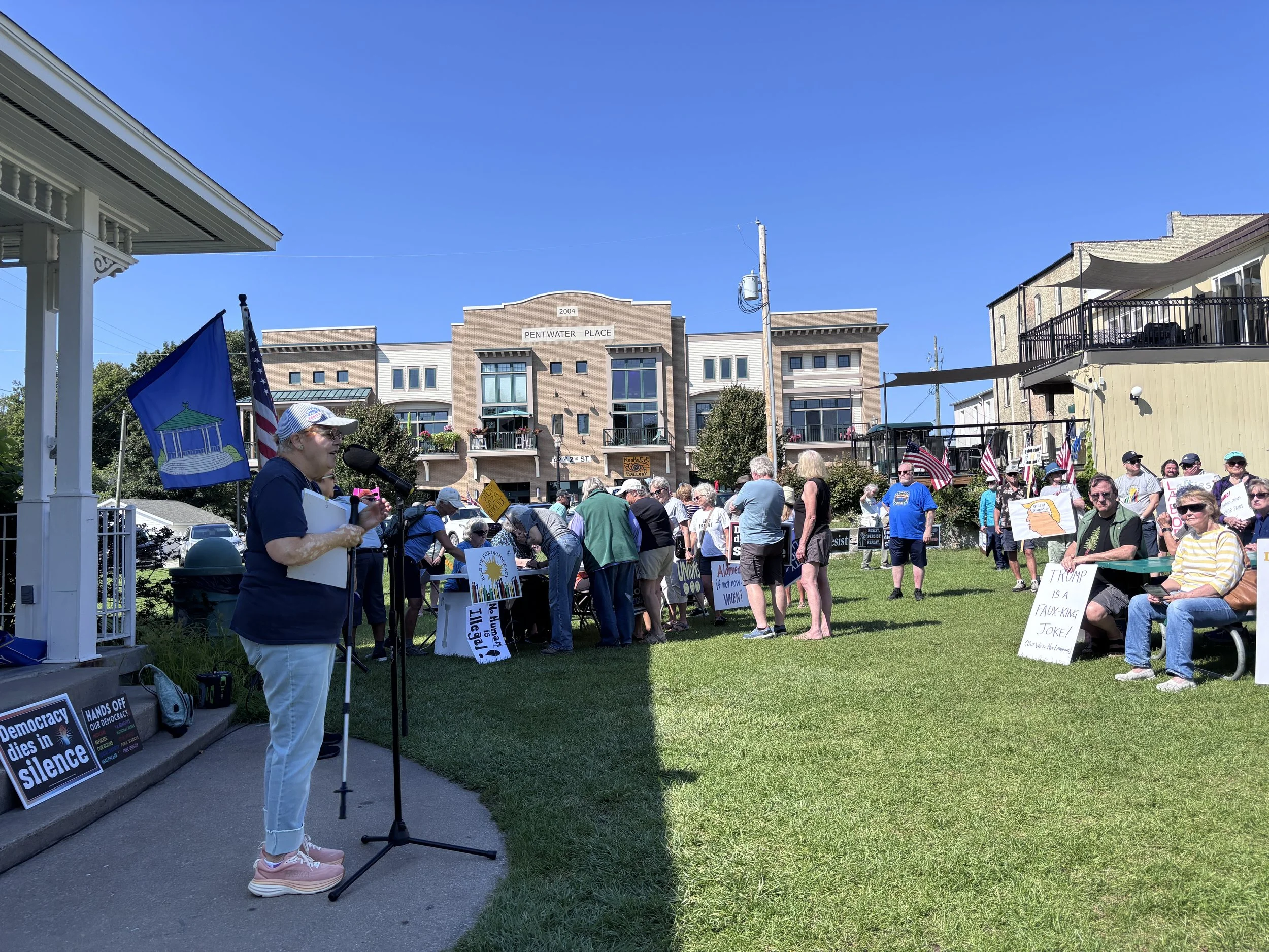 On Labor Day, around 100 folks gathered at the Pentwater Village Green Park in Pentwater, Michigan for a nationwide rally titled “Workers/Laborers Over Billionaires.” The Oceana Country Democrats (OCD) supported this campaign’s efforts which included honoring workers, laborers and unions, protesting against the current administration and reminding the country that workers and laborers are really the wealth generators. Pentwater has a population of around 900 people. At least 24 people spoke at the microphone to tell their personal stories of how the administration’s actions are affecting them, and to remind us that we are strong and that the people have the power.